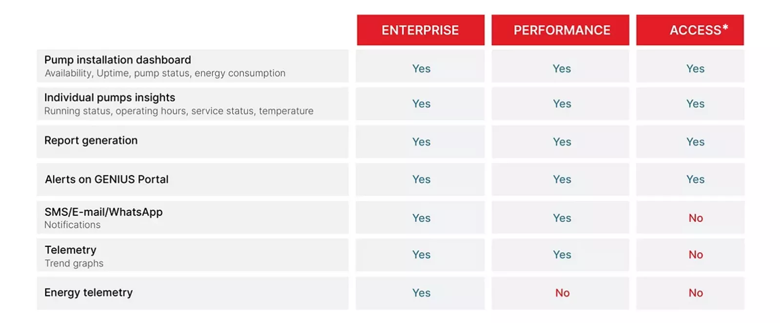 *O acesso gratuito à bomba de vácuo conectada está sempre disponível com o nível ACCESS